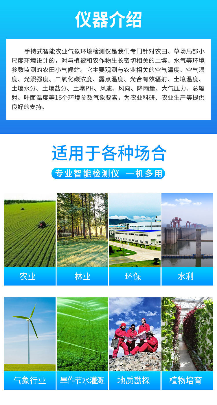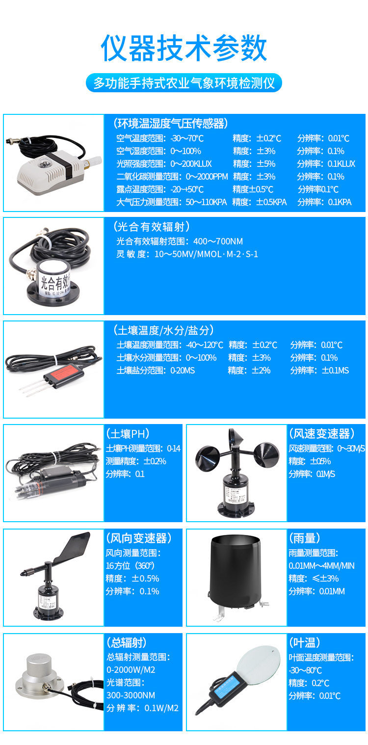 氣象觀測儀器是我們專門針對農(nóng)田、草場局部小尺度環(huán)境設(shè)計(jì)的,對與植被和農(nóng)作物生長密切相關(guān)的土壤、水氣等環(huán)境參數(shù)監(jiān)測的農(nóng)田小氣候站。它主要觀測與農(nóng)業(yè)相關(guān)的空氣溫度、空氣濕度、光照強(qiáng)度、二氧化碳濃度、露點(diǎn)溫度、光合有效輻射等5個(gè)環(huán)境參數(shù)氣象要素,為農(nóng)業(yè)科研、農(nóng)業(yè)生產(chǎn)等提供良好的支持。