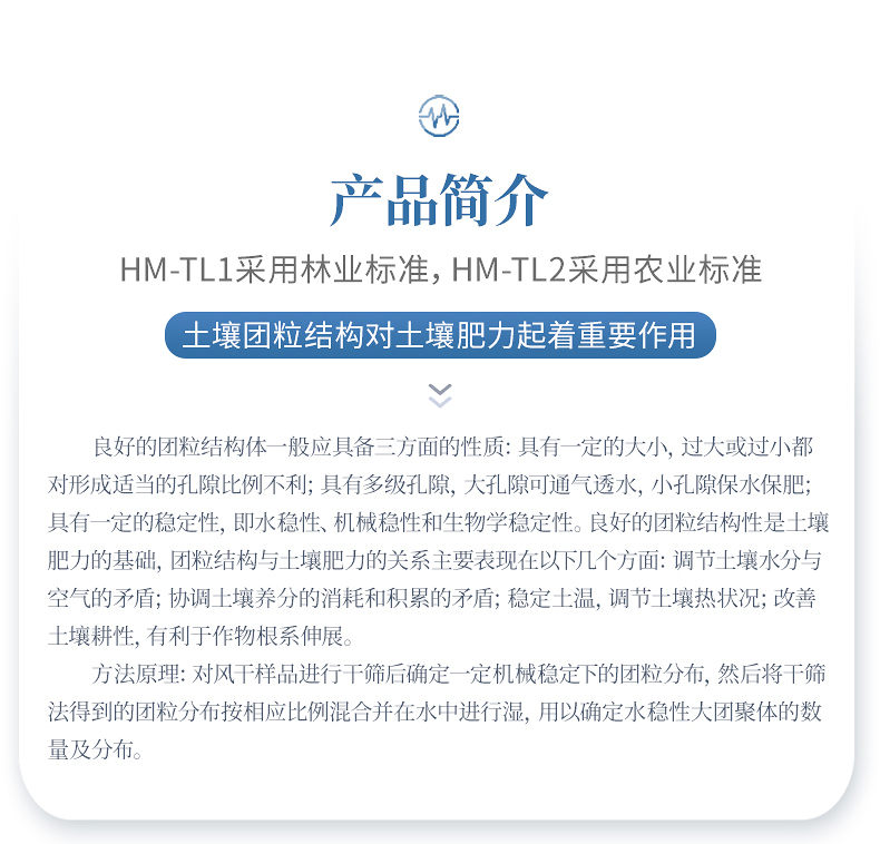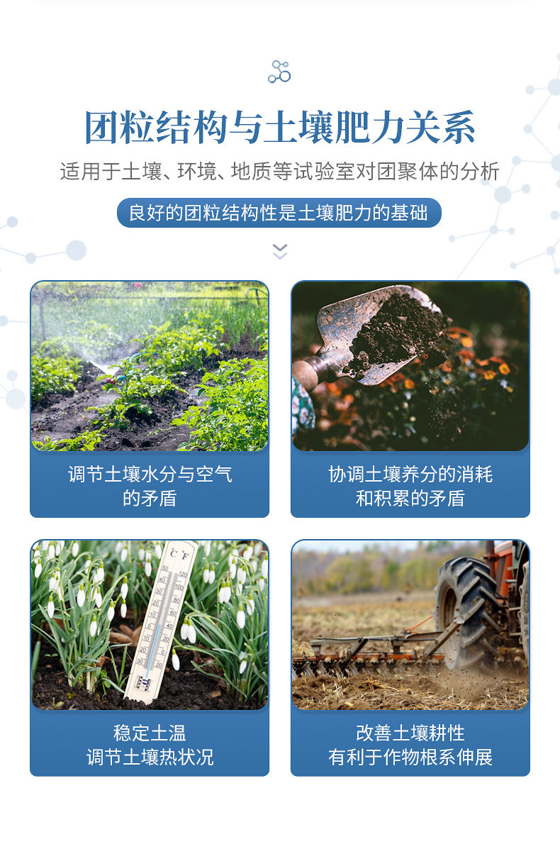 1、土壤團粒結構對土壤肥力起著重要作用。良好的團粒結構體一般應具備三方面的性質(zhì):具有一定的大小,過大或過小都對形成適當?shù)目紫侗壤焕?具有多級孔隙,大孔隙可通氣透水,小孔隙保水保肥;具有一定的穩(wěn)定性,即水穩(wěn)性、機械穩(wěn)性和生物學穩(wěn)定性。良好的團粒結構性是土壤肥力的基礎,團粒結構與土壤肥力的關系主要表現(xiàn)在以下幾個方面:調(diào)節(jié)土壤水分與空氣的矛盾;協(xié)調(diào)土壤養(yǎng)分的消耗和積累的矛盾;穩(wěn)定土溫,調(diào)節(jié)土壤熱狀況;改善土壤耕性,有利于作物根系伸展。土壤團粒分析儀適用于土壤、環(huán)境、地質(zhì)等試驗室對團聚體的分析。